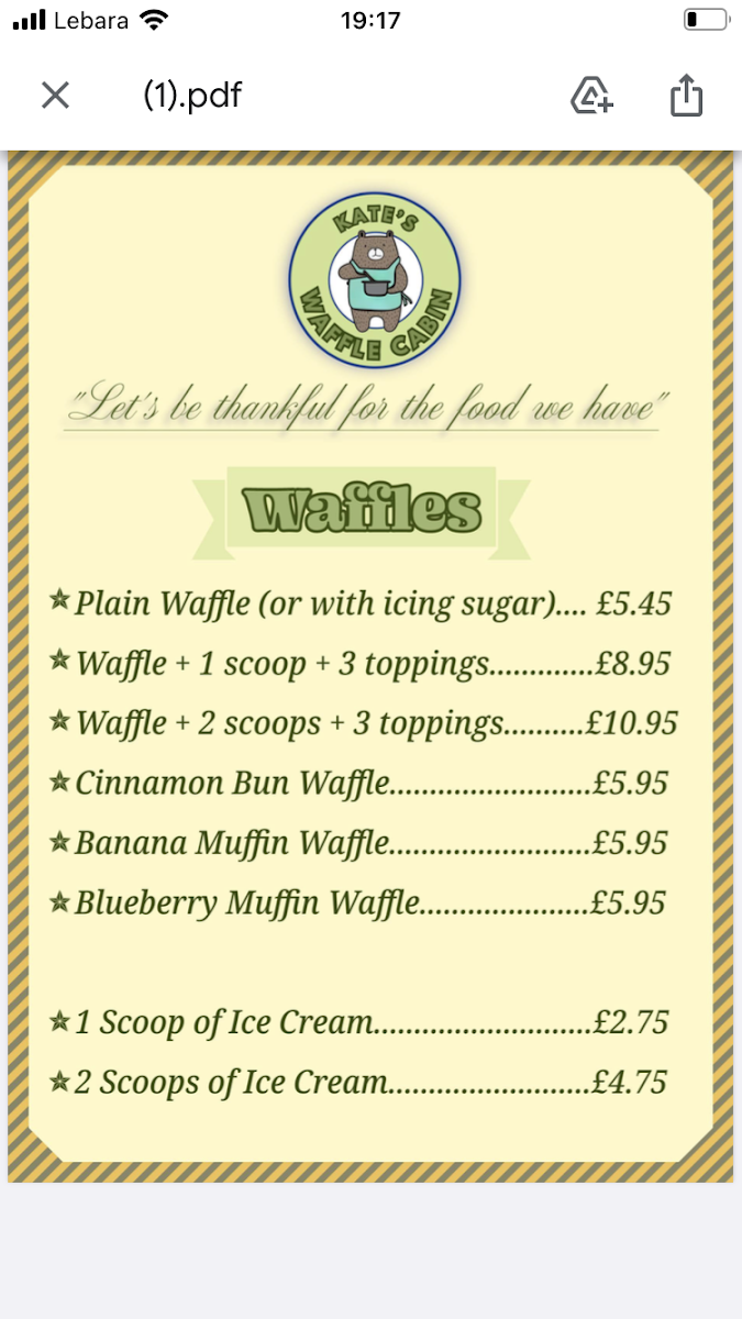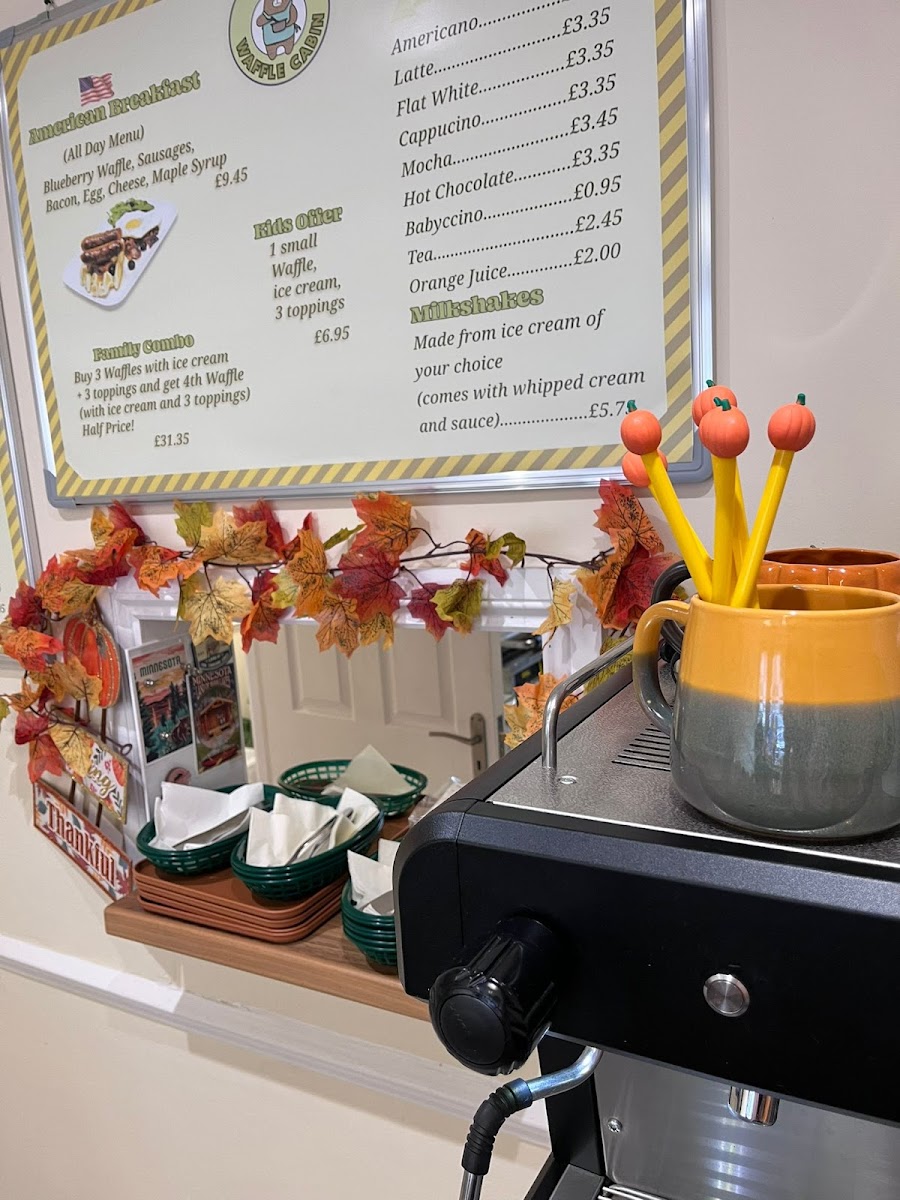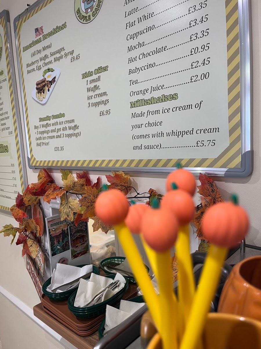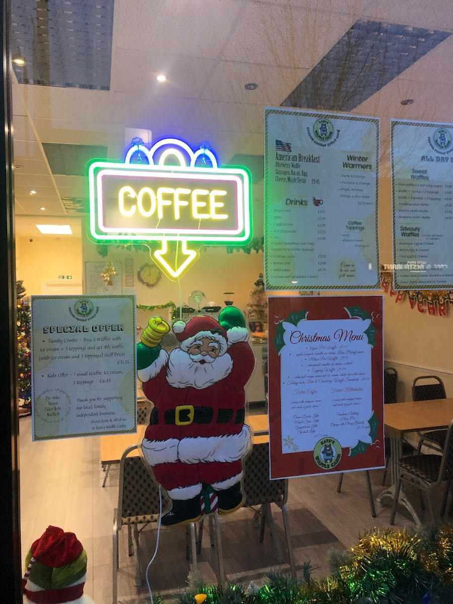 The menu at Kate's Waffle Cabin features a variety of options centered around waffles, complemented by other breakfast and dessert items. It is well-suited for breakfast, snacks, or casual light meals throughout the day.